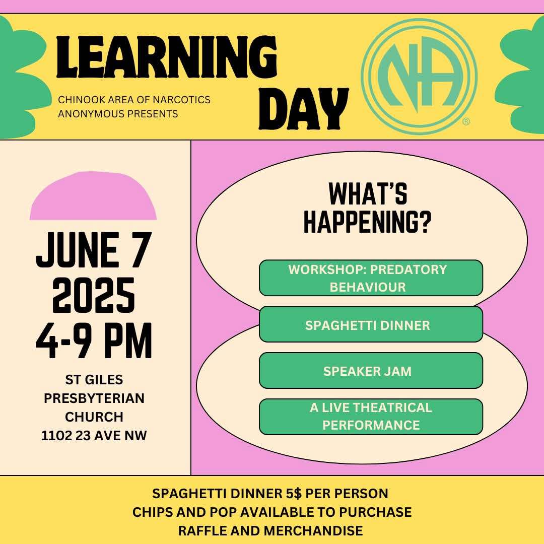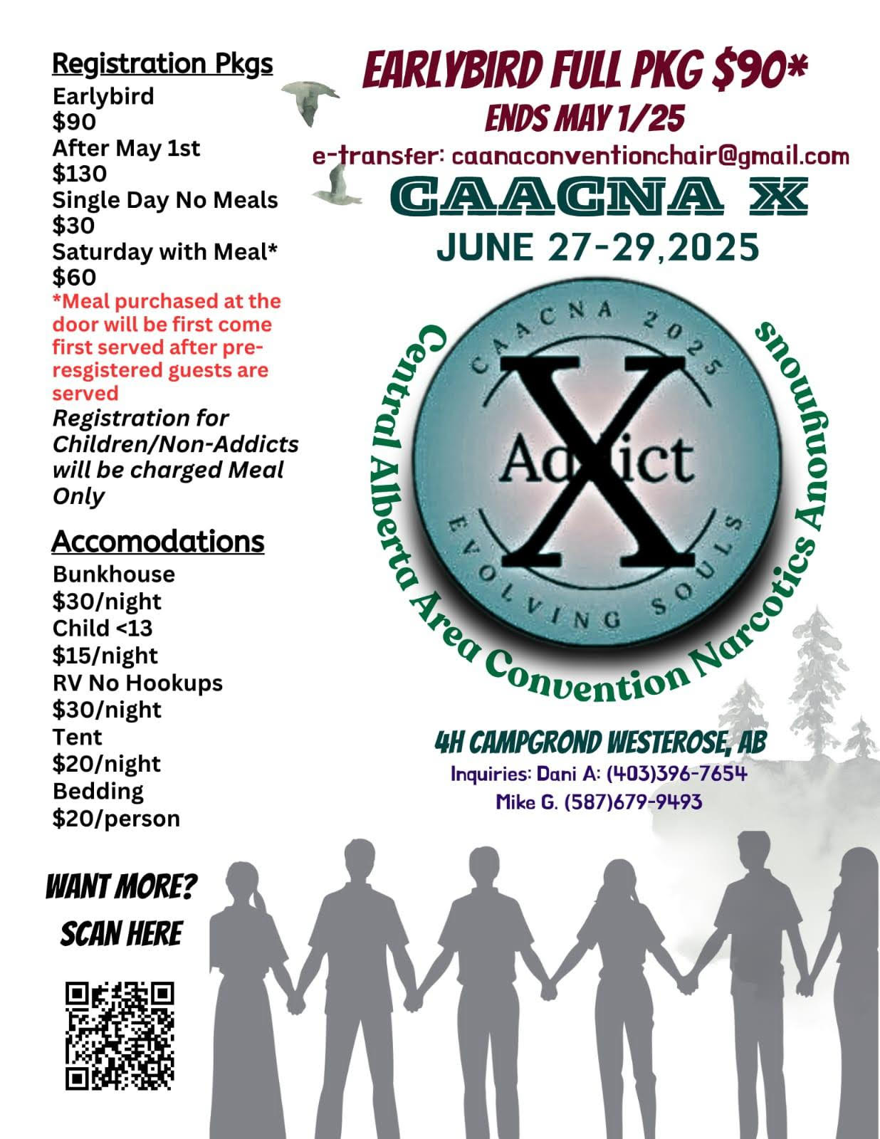 The Central Alberta Area Convention of Narcotics Anonymous is set for June 27th to 29th at the Alberta 4-H Centre in Westerose, AB. See the event poster for more details.